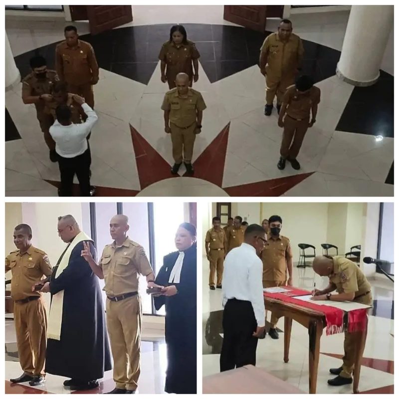 Tanimbar//Radarpagi.id Saumlaki, 10 Februari 2026 Sekretaris Daerah Brampi Moriolkosu, SH, atas nama Bupati Kepulauan Tanimbar, melantik dan mengambil sumpah/janji tiga penjabat kepala desa masing-masing kepala desa Latdalam kecamatan Tanimbar Selatan, Pj. Kepala desa Awear Rumngeur kecamatan Fordata dan Pj. Kades Karatat Kecamatan Wuarlabobar, bertempat di lobi lantai tiga kantor bupati.