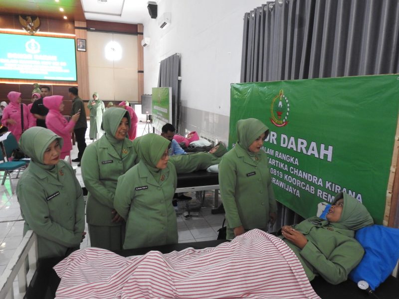 Radarpagi.id Dalam rangka memperingati Hari Ulang Tahun (HUT) ke-80 Persit Kartika Chandra Kirana (KCK), Persit KCK Cabang XXXIII Kodim Pasuruan Koorcab Rem 083 PD V/Brawijaya menggelar kegiatan bakti sosial berupa donor darah serta pemberian bantuan sosial (bansos), bertempat di Makodim 0819 Pasuruan. Jumat (06/02/26). Kegiatan kemanusiaan tersebut diikuti oleh ibu Persit, personel TNI, Polri, anggota Bhayangkari, PNS TNI, Warakawuri, anggota Pramuka serta masyarakat sekitar. Selain sebagai rangkaian peringatan HUT Persit, kegiatan ini juga menjadi wujud kepedulian sosial terhadap sesama, khususnya dalam membantu ketersediaan stok darah di wilayah Pasuruan.Ketua Persit KCK Cabang XXXIII Kodim Pasuruan, Ny. Vita Boga, dalam kesempatan tersebut menyampaikan bahwa kegiatan donor darah dan pemberian bansos merupakan bentuk nyata peran Persit dalam mendukung tugas suami sekaligus berkontribusi langsung bagi masyarakat. “Melalui kegiatan ini, kami berharap dapat membantu sesama yang membutuhkan, sekaligus menumbuhkan semangat kepedulian sosial di lingkungan Persit, TNI, Polri, dan masyarakat,” ujar Ny. Vita Boga.Selain pelaksanaan donor darah yang bekerja sama dengan Palang Merah Indonesia (PMI), Persit KCK juga menyalurkan paket bantuan sosial kepada warga yang membutuhkan sebagai bentuk perhatian dan kasih sayang. Letkol Inf Boga Bramiko, M. Han., selaku Dandim 0819 Pasuruan mengapresiasi inisiatif Persit KCK Cabang XXXIII Kodim Pasuruan dalam menyelenggarakan kegiatan sosial yang bermanfaat bagi masyarakat luas.“Semoga kegiatan ini dapat terus berlanjut dan memberikan dampak positif, sekaligus mempererat sinergi antara TNI, Polri, organisasi istri prajurit, serta masyarakat,” ungkapnya. Dengan mengusung semangat kebersamaan dan kepedulian, rangkaian kegiatan HUT ke-80 Persit KCK ini diharapkan mampu memperkuat peran Persit sebagai organisasi yang aktif, peduli, dan bermanfaat bagi bangsa dan negara.