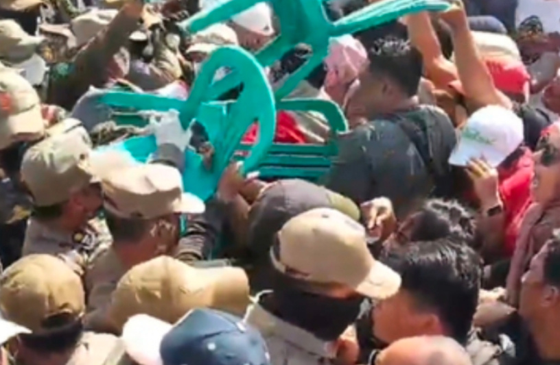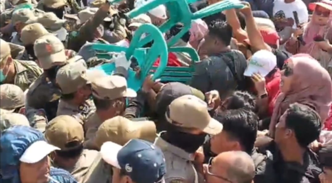 Kericuhan tak terhindarkan saat warga berusaha mengadang petugas agar pembongkaran dihentikan. Sejumlah warga bahkan membawa kursi plastik dan benda seadanya untuk menutup akses menuju lokasi eksekusi. Situasi memanas ketika petugas tetap merangsek masuk, hingga berujung bentrokan fisik.