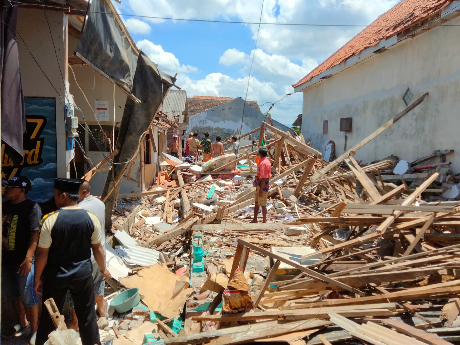 Enam rumah rusak ringan, meliputi pecahnya kaca, keretakan dinding, dan kerusakan bagian atap. Petugas gabungan bersama masyarakat setempat langsung melakukan evakuasi korban, pembersihan puing, serta pengamanan lokasi kejadian.