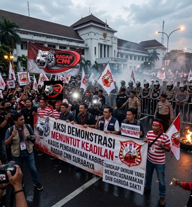 SURABAYA ( Radaragi.id ) Gelombang solidaritas dari kalangan jurnalis kembali menguat. Kali ini, jurnalis Radar CNN bersama organisasi masyarakat MADASE menyatakan sikap tegas melalui rencana aksi demonstrasi yang akan digelar pada Rabu, 08 April 2026. jika proses ini masih dalam pengembangan dan belum di tangani secara cepat ,Aksi tersebut merupakan respons atas lambannya penanganan kasus dugaan penganiayaan yang menimpa Kepala Biro Radar CNN Surabaya, yang hingga kini dinilai belum menunjukkan titik terang dalam proses penegakan hukum.