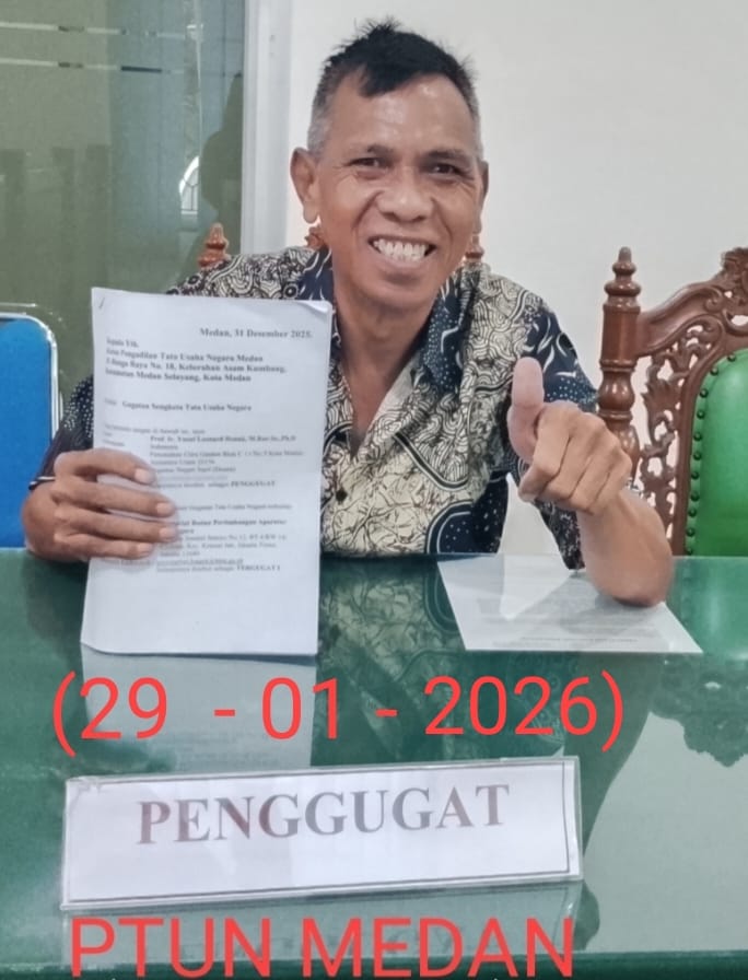 Biro Investigasi Nasional : Tri juliadi Medan Propinsi Sumatera utara- jumat 30 januari 2026 – Seorang Dosen berstatus Pegawai negeri sipil pada Kementerian Agama Republik Indonesia,Prof.Ir.Yusuf Leonard Henuk.MRur.Sc.Ph.D,secara resmi Mengajukan Gugatan Sengketa Tata Usaha Negara ke Pengadilan Tata Usaha Negara ( PTUN ) Medan.Gugatan tersebut diajukan terhadap Sekretariat Badan Pertimbangan Aparatur Sipil Negara ( BPASN ) selaku Tergugat I dan Rektor Universitas Sumatera Utara ( USU ) selaku Tergugat II ,Gugatan Sengketa telah didaftarkan dab teregritasi di PTUN Medan pada awal januari 2026.