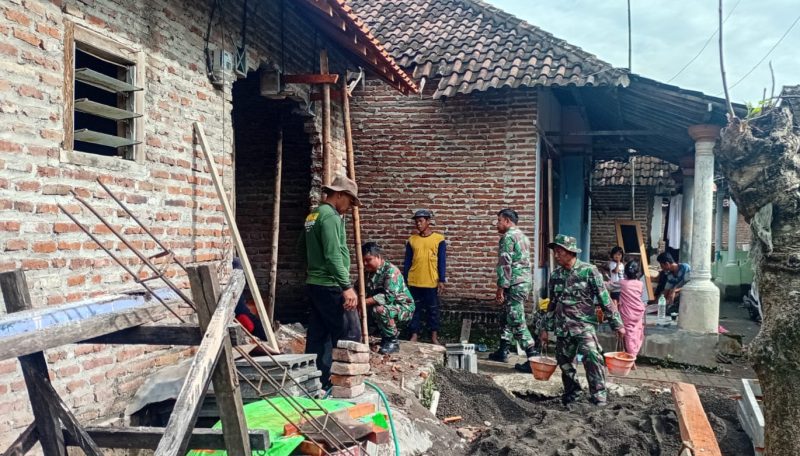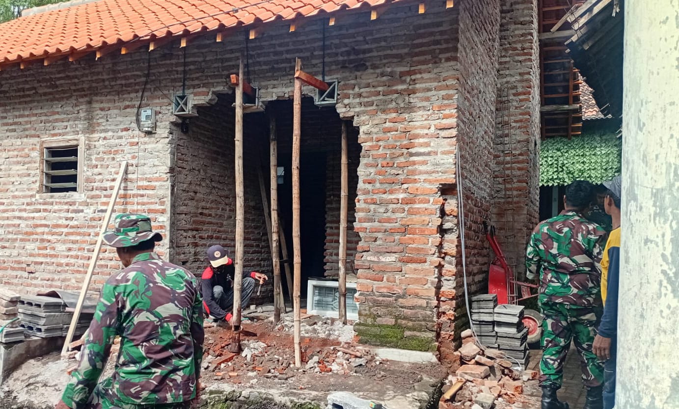 Suara palu yang bersahutan menandai semangat kerja anggota Satgas TMMD Ke-127 Kodim 0819/Pasuruan dalam merehabilitasi Rumah Tidak Layak Huni (RTLH) milik salah satu warga.