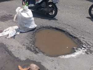 Lubang-lubang tersebut memiliki kedalaman sekitar 15–20 cm, dengan lebar bervariasi, mulai dari setengah meter hingga hampir 3 meter. Beberapa titik bahkan mencapai lebar 2 meter. Saat hujan turun, lubang tertutup genangan air sehingga tidak terlihat oleh pengendara. Minimnya penerangan jalan membuat kondisi semakin gelap dan berisiko tinggi, terutama pada malam hari.