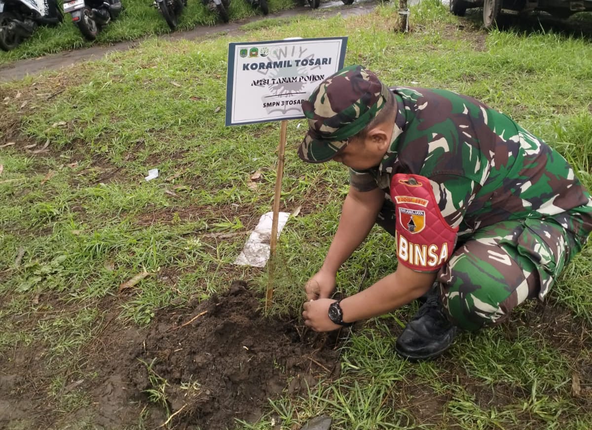 ( RADAR PAGI)Dalam upaya mengantisipasi sekaligus meningkatkan kesiapsiagaan menghadapi potensi bencana alam, Koramil 0819/26 Tosari bersama unsur pemerintah desa dan instansi terkait melaksanakan kegiatan penghijauan berupa penanaman pohon di wilayah Kecamatan Tosari, Kabupaten Pasuruan, Senin (2/2/2026). Kegiatan tersebut berlangsung pada pukul 08.45 WIB, bertempat di Lapangan Kendungpani, Desa Mororejo, Kecamatan Tosari. Penghijauan ini dipimpin oleh Koptu Yoyok yang mewakili Danramil 0819/26 Tosari, dengan menanam sebanyak 300 bibit pohon jenis cemara dan pohon kresek.Program penanaman pohon ini merupakan bagian dari langkah strategis dalam rangka menjaga kelestarian lingkungan sekaligus sebagai upaya mitigasi bencana, khususnya untuk mengurangi risiko tanah longsor, erosi, serta menjaga keseimbangan ekosistem di wilayah Tosari yang memiliki kontur wilayah perbukitan. Turut hadir dalam kegiatan tersebut, Kepala Desa Mororejo Bapak Ngatoyo, Asper Tosari Bapak Amir, Kepala SMPN 3 Tosari Ibu Novi, serta peserta penghijauan yang terdiri dari unsur TNI, perangkat desa, pelajar, dan masyarakat setempat.Koptu Yoyok dalam keterangannya menyampaikan bahwa kegiatan penghijauan ini merupakan wujud nyata kepedulian TNI terhadap kelestarian lingkungan dan keselamatan masyarakat. “Melalui penanaman pohon ini, kami berharap dapat memberikan kontribusi nyata dalam menjaga lingkungan sekaligus meningkatkan kesiapsiagaan wilayah terhadap potensi bencana alam. Sinergi antara TNI, pemerintah daerah, dan masyarakat menjadi kunci utama dalam mewujudkan wilayah yang aman dan lestari,” ujarnya.